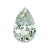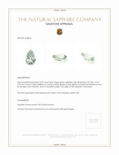 The pendant features a beautiful, transparent 0.59 carat pear shape green sapphire with the dimensions of 6.40 x 4.34 x 2.93 mm and a mixed brilliant cut. It has a clarity grade of very slightly included (evaluated at eye level), light color saturation, and an excellent polish. The origin of this sapphire is Montana.