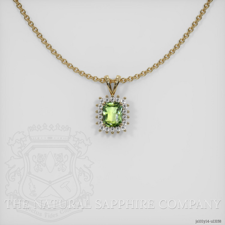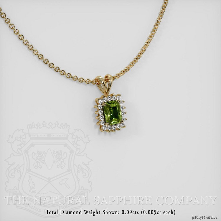 Halo Green Sapphire Pendant 0.69 Ct., 14K Yellow Gold