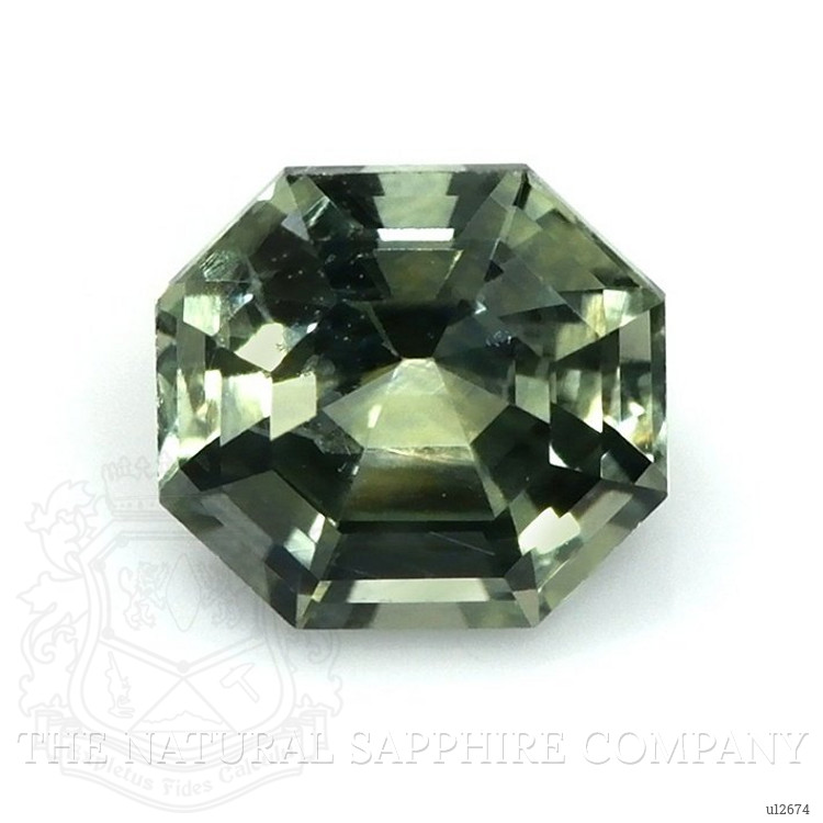 The ring features a beautiful, transparent 0.52 carat asscher shape green sapphire with the dimensions of 4.68 x 4.37 x 3.13 mm and a asscher cut. It has a clarity grade of very slightly included (evaluated at eye level), medium intense color saturation, and an excellent polish. The origin of this sapphire is Montana.