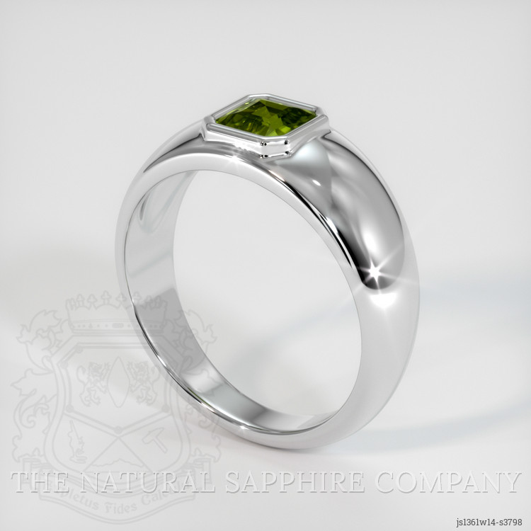 Men's Green Sapphire Ring 0.60 Ct., 14K White Gold