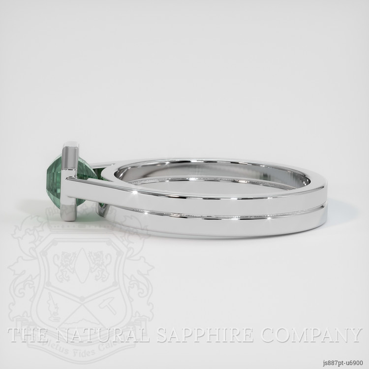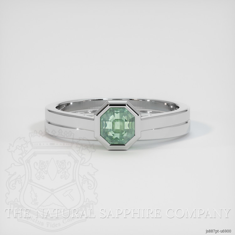The ring features a beautiful, transparent 1.54 carat asscher - octagon shape green sapphire with the dimensions of 5.70 x 5.38 x 5.20 mm and a asscher cut. It has a clarity grade of very slightly included (evaluated at eye level), intense color saturation, and an excellent polish. The origin of this sapphire is Montana.