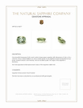 In the heart of Montana, amidst the rugged landscapes and the unspoiled beauty of nature, the journey of this exquisite green sapphire begins. Each gemstone has a story, and this 0.85-carat cushion-shaped green sapphire embodies the untamed essence of its origin. With dimensions of 5.86 x 4.96 x 3.28 mm and a meticulously crafted mixed brilliant cut, this remarkable gem underwent a transformation from a raw piece of nature to a breathtaking, polished treasure. Its medium intense color saturation reflects the lush foliage of Montana's wilderness, while its clarity grade of very slightly included lets its distinct, natural character shine through.