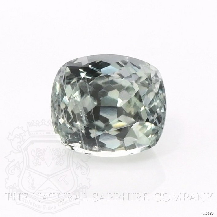 The ring features a beautiful, transparent 1.12 carat cushion shape green sapphire with the dimensions of 5.97 x 5.28 x 4.14 mm and a mixed brilliant cut. It has a clarity grade of very slightly included (evaluated at eye level), medium color saturation, and an excellent polish. The origin of this sapphire is Montana.