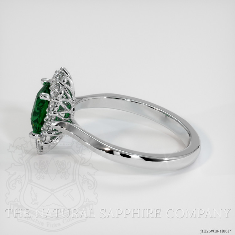 Crafted in luxurious 14K white gold, the setting of this ring is a statement of timeless elegance. The cool, silvery sheen of the metal serves as the perfect backdrop to the vivid green and radiant whites of the stones, offering a harmonious blend of classic refinement and modern artistry. The smooth, polished finish of the band speaks of sophistication, inviting one to consider the smooth passage of a love that evolves yet remains constant through time. It is within this setting that the full beauty of the gemstones is realized, showcasing an artful synergy that underscores the enduring nature of commitment.