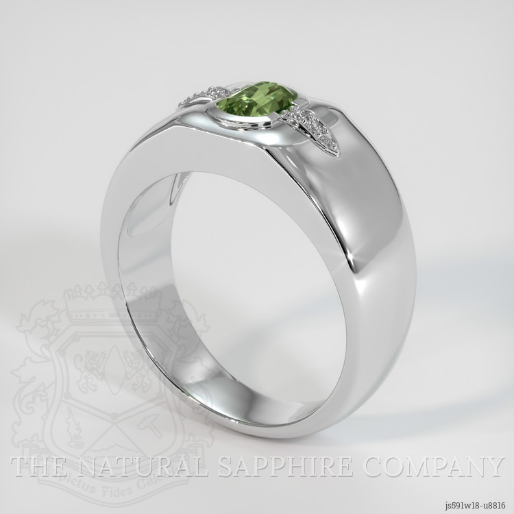 Men's Green Sapphire Ring 1.37 Ct., 18K White Gold