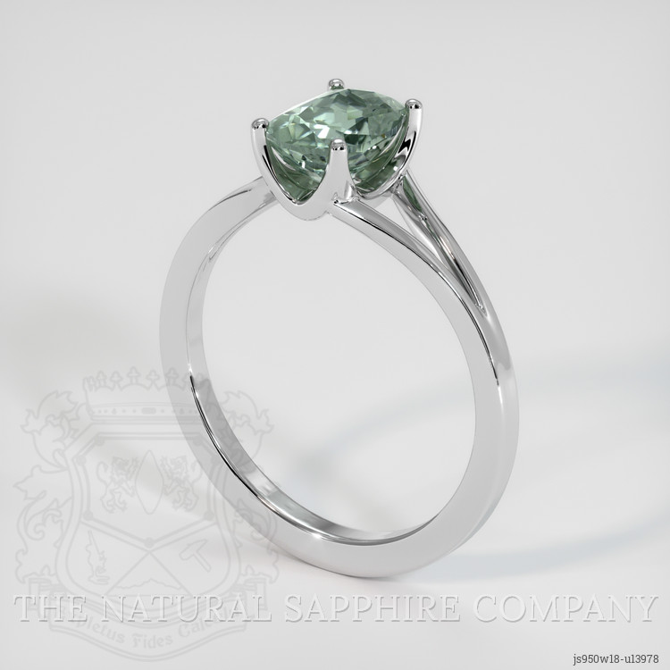 Solitaire Green Sapphire Ring 1.71 Ct., 18K White Gold