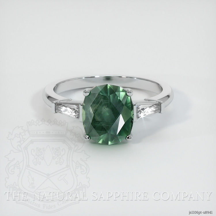 Three Stone Green Sapphire Ring 2.22 Ct., Platinum 950