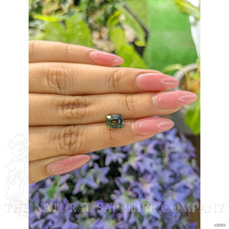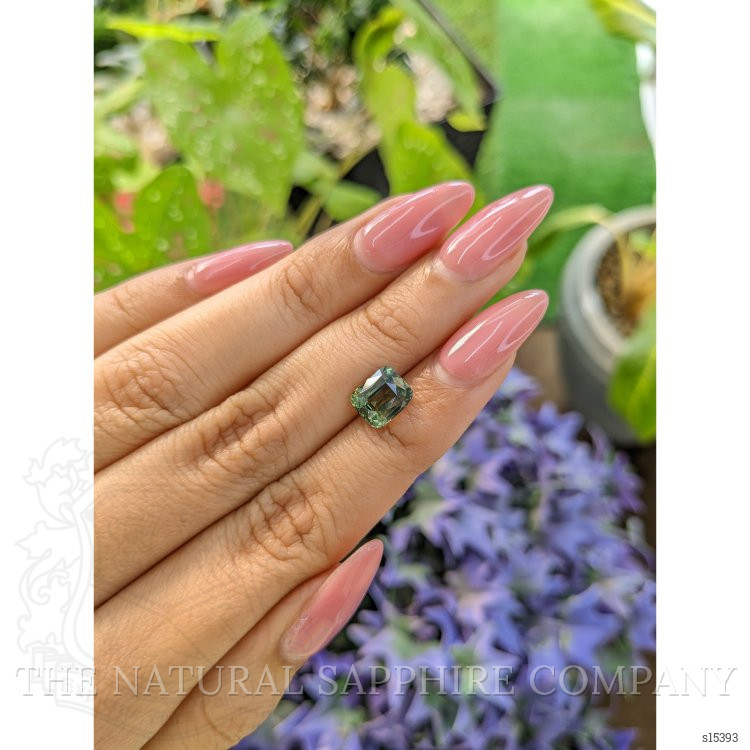 Introducing a masterpiece that transcends mere ornamentation, capturing the essence of life's most cherished moments. The Natural Sapphire Company invites you to immerse yourself in the allure of our exquisite ring featuring a ravishing 2.67 carat cushion-shaped green sapphire. The epitome of elegance, this sapphire is sourced from the mystical lands of Madagascar, renowned for its enchanting gemstones. Its dimensions, 8.04 x 6.80 x 4.91 mm, are rendered in a mixed brilliant cut, crafting a sparkle that captivates with every glance. With a clarity grade of very slightly included and medium intense color saturation, this sapphire exudes a verdant radiance that conjures the lush landscapes from which it hails, a delicate dance between nature and refinement.