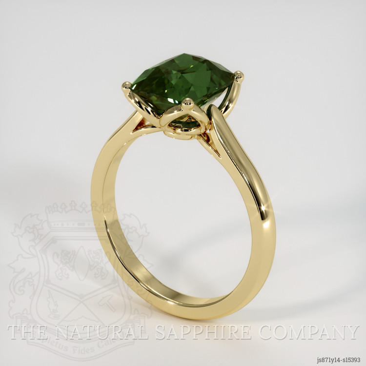 Floral Green Sapphire Ring 2.67 Ct., 14K Yellow Gold