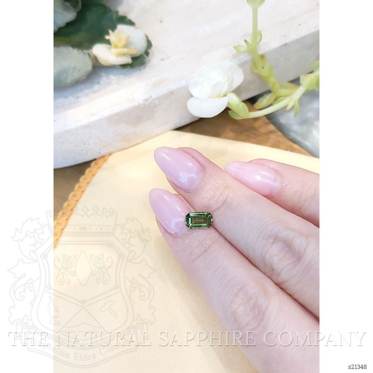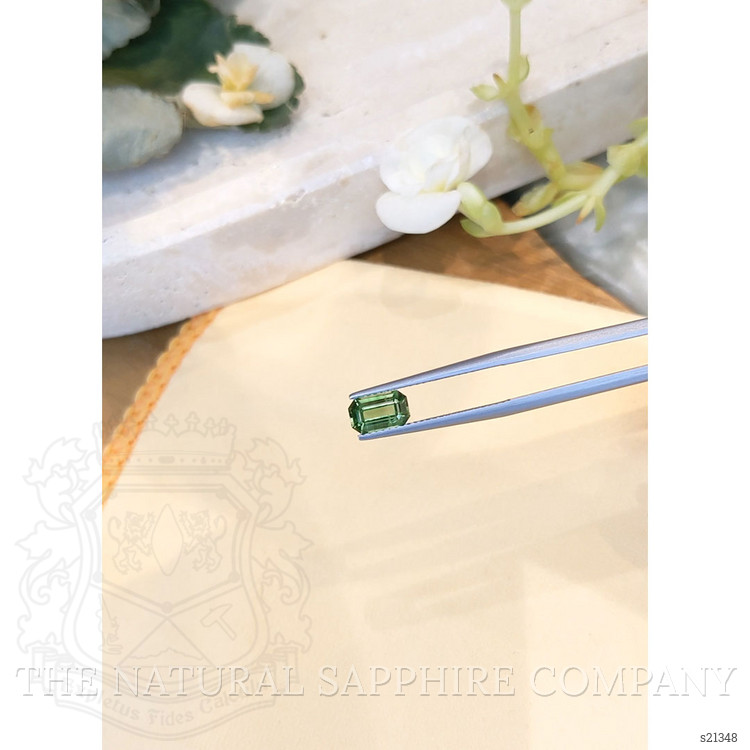 Our green sapphire’s journey does not end at its discovery. In our skilled hands at The Natural Sapphire Company, this stone undergoes a transformation while retaining its inherent beauty. Crafted with an expertise honed through years, the emerald-cut sapphire achieves an excellent polish, reflecting light with a brilliance that transcends time. Enhanced through a process of precise heat treatment, its true colors are revealed, making the stone not just an object of beauty, but also of profound energy and elegance.