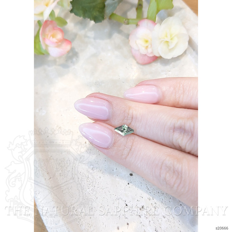 Introducing an exquisite piece from The Natural Sapphire Company, crafted for those who appreciate the authentic beauty and rarity of ethically sourced gemstones. This enchanting ring showcases a 0.97 carat fancy-shaped green sapphire with a mesmerizing step cut, elegantly proportioned at 8.53 x 5.14 x 3.59 mm. The stone hails from the mineral-rich terrains of Montana, renowned for producing some of the world's most desirable sapphires. Boasting an intense color saturation and a clarity grade of very slightly included, evaluated at eye level, this captivating gemstone promises to enthrall even the most discerning of jewelry aficionados. With no enhancements, its natural beauty remains unadulterated, a true testament to its provenance and excellence.