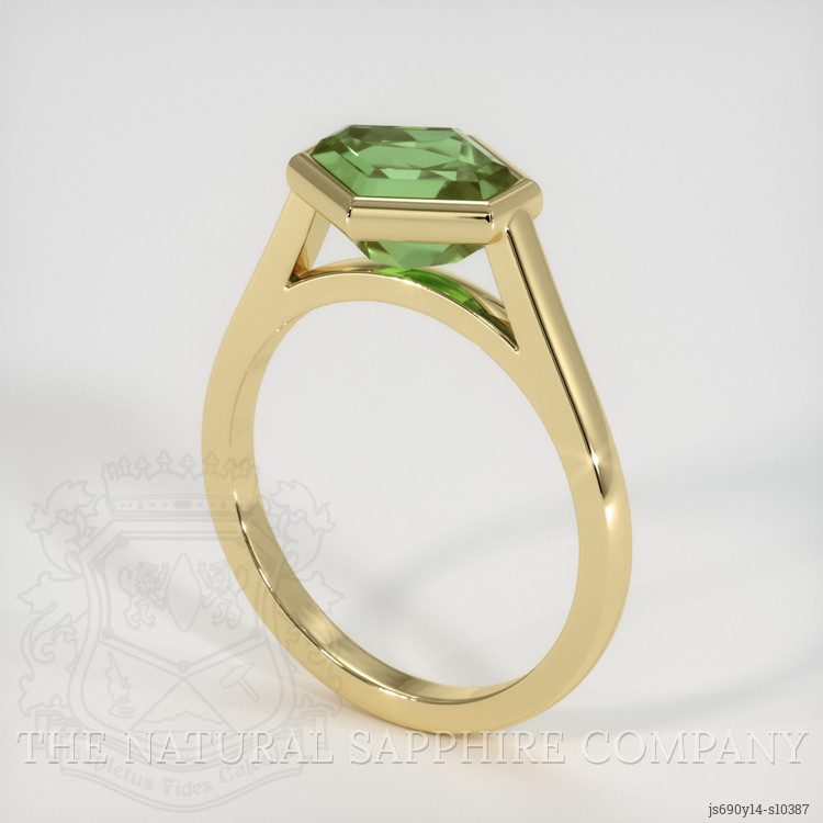 Bezel Green Sapphire Ring 3.72 Ct., 14K Yellow Gold