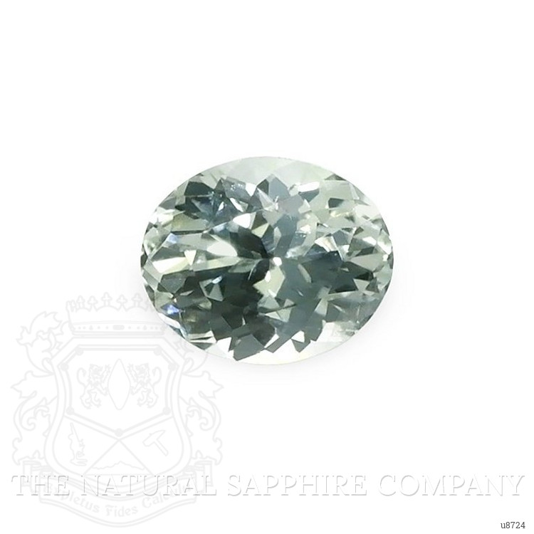 The ring features a beautiful, transparent 0.67 carat oval shape green sapphire with the dimensions of 5.69 x 4.68 x 3.38 mm and a mixed brilliant cut. It has a clarity grade of very slightly included (evaluated at eye level), medium light color saturation, and an excellent polish. The origin of this sapphire is Montana.