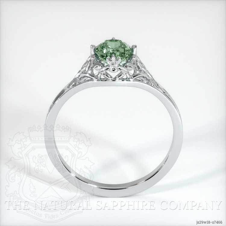 Antique Style Green Sapphire Ring 0.98 Ct., 18K White Gold