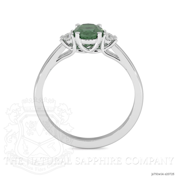 Three Stone Green Sapphire Ring 0.99 Ct., 14K White Gold