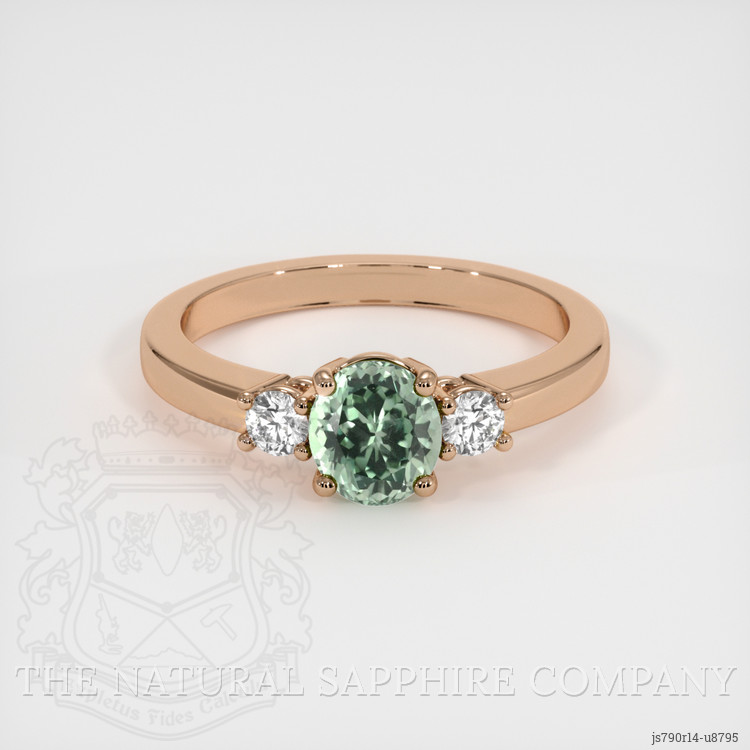 Three Stone Green Sapphire Ring 1.00 Ct., 14K Rose Gold