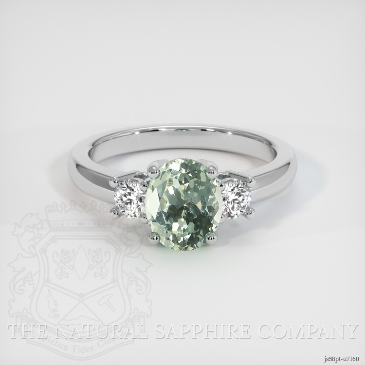 Three Stone Green Sapphire Ring 1.26 Ct., Platinum 950