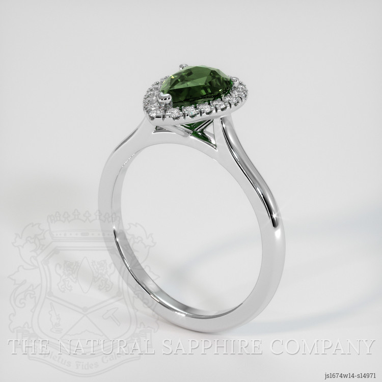 Set entirely in 14K white gold, this ring is a blend of elegance and resilience. The lustrous white gold serves as the perfect backdrop that enhances the green hue of the sapphire and the brilliance of the diamonds. This exquisite creation is a testament to The Natural Sapphire Company's dedication to craft and quality, offering you a piece of the natural world that is as enduring as it is beautiful. Whether as a symbol of everlasting commitment or a cherished heirloom, this ring tells a story that resonates with the splendor and richness of nature.