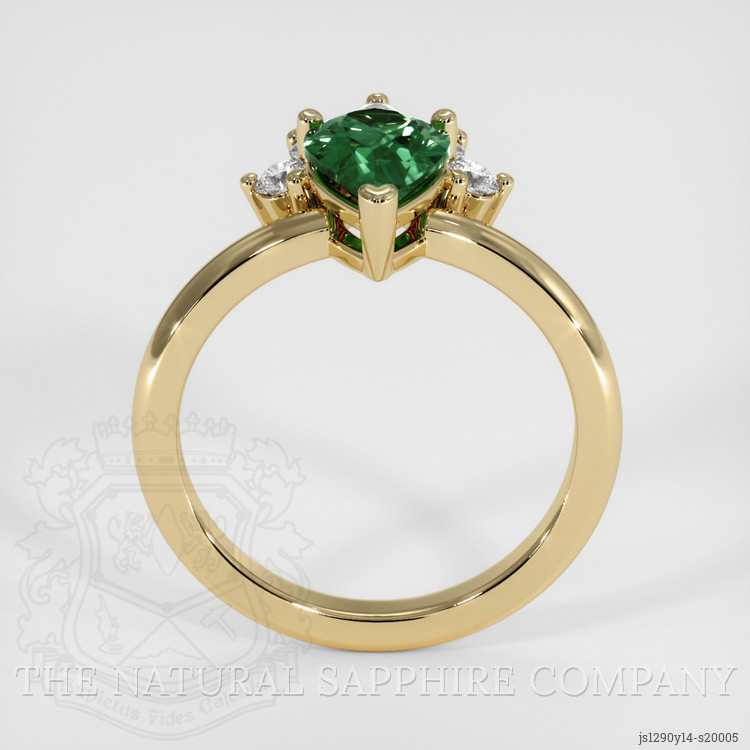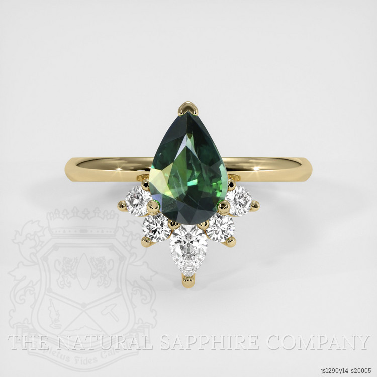 Crafted into an exquisite pear shape, measuring 9.06 x 6.05 x 3.77 mm, the sapphire's mixed brilliant cut ensures that every facet dances with the light, sparking with endless shades of verdant beauty. Its slightly included clarity grade, evaluated at eye level, speaks to its authentic and natural beginnings, perfectly imperfect as only nature's creations are meant to be. The stone’s vivid color saturation serves as a reminder of the rich vegetation and lush landscapes of its native Madagascar, now immortalized in a single stunning gem. When nestled into the rich embrace of 14K yellow gold, its deep green becomes even more vibrant, each hue lovingly accentuated by the warmth of the metal.