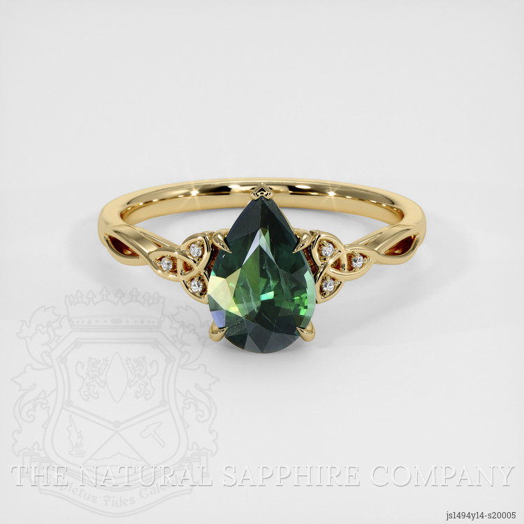 Introducing an exquisite masterpiece from The Natural Sapphire Company, this ring showcases a captivating 1.41 carat green sapphire, thoughtfully crafted in a pear shape with dimensions of 9.06 x 6.05 x 3.77 mm. Radiating from its sleek mixed brilliant cut, this gemstone displays a subtle dance of light, enhanced by its vivid color saturation that truly captivates. Sourced from the renowned sapphire deposits of Madagascar, this gemstone is evaluated as slightly included to the eye, maintaining an allure of natural elegance. Its excellent polish further refines the gem’s surface, allowing it to mesmerize with every subtle shift in orientation.