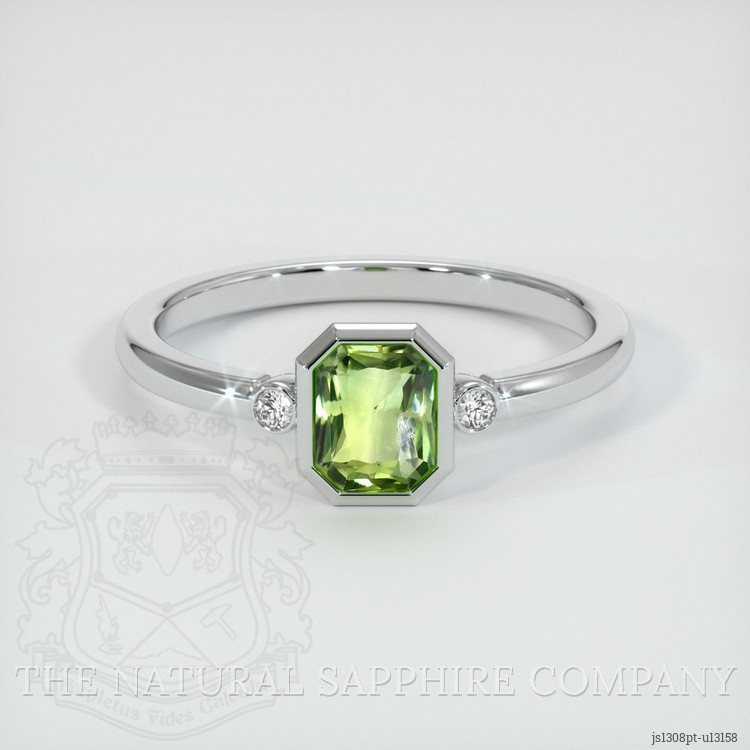 Three Stone Green Sapphire Ring 0.69 Ct., Platinum 950