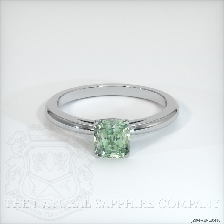 Solitaire Green Sapphire Ring 1.06 Ct., 18K White Gold