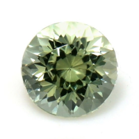 The ring features a beautiful, transparent 0.78 carat round shape green sapphire with the dimensions of 5.40 x 5.35 x 3.94 mm and a mixed brilliant cut. It has a clarity grade of very slightly included (evaluated at eye level), medium color saturation, and an excellent polish. The origin of this sapphire is Montana.