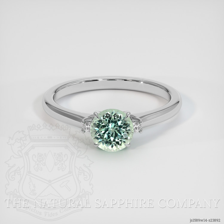 Nestled within the lustrous embrace of gleaming 14K white gold, the heart of this exquisite piece is a captivating 1.47-carat green sapphire. Each element of this gem tells a romantic story, from its origin in the rugged beauty of Montana to its enchanting mixed brilliant cut, designed to bring out vivid flashes of light with every movement. This sapphire's medium intense color saturation and eye-clean clarity invite its beholder to dive into a mesmerizing world of verdant hues, symbolizing love’s renewal and undying nature. Enhanced through heat treatment, its transparency is akin to the purity of true love, steadfast and clear.