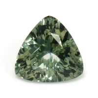 The men's ring features a beautiful, transparent 0.89 carat trillion shape green sapphire with the dimensions of 6.08 x 6.14 x 3.75 mm and a trillion cut. It has a clarity grade of very slightly included (evaluated at eye level), intense color saturation, and an excellent polish. The origin of this sapphire is Montana.