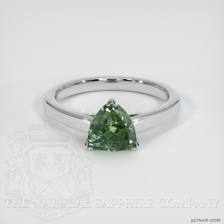 Discover a piece of unparalleled beauty and elegance with the exquisite 1.33 carat trillion shape green sapphire ring from The Natural Sapphire Company. Designed for those who cherish unique charm and refined taste, this ring is not just an accessory but a tangible piece of art that brings joy and elegance to every moment. The sapphire's enchanting green hue, sourced from the pristine lands of Montana, is a spectacle of nature's wonder. With its intense color saturation and excellent polish, this stone catches the light in a myriad of directions, creating a dazzling display that captivates the heart of everyone who lays eyes on it.
