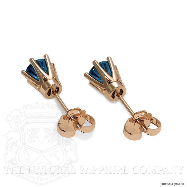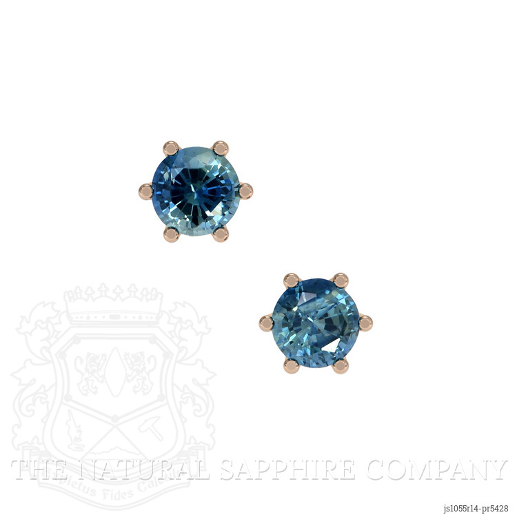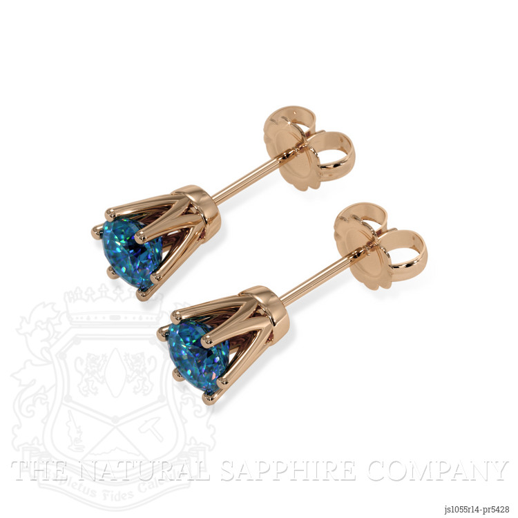 Studs Greenish Blue Sapphire Earring 0.69 Ct.Tw.Total Carat Weight, 14K Rose Gold