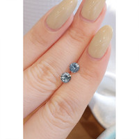 These earrings feature a stunning pair of transparent sapphires, boasting a total carat weight of 1.19. The sapphires are round shaped with a distinctive greenish-blue hue, measuring 5.16 x 5.11 x 3.33 mm each. They exhibit a mixed brilliant cut, ensuring exquisite light reflection, and possess a clarity grade of very slightly included, as evaluated at eye level. This indicates a high standard of clarity observable without magnification. Their medium light color saturation lends a soft yet vibrant appeal, complemented by an excellent polish for a refined finish. Hailing from Montana, the sapphires are a rare find that adds a touch of exclusivity to the design.