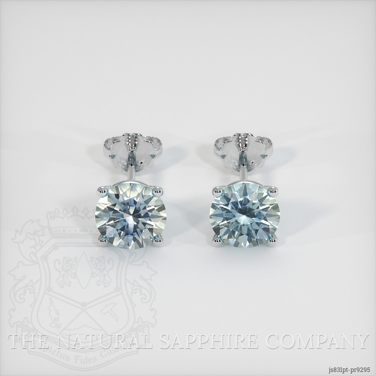 Studs Greenish Blue Sapphire Earring 1.34 Ct.Tw.Total Carat Weight, Platinum 950