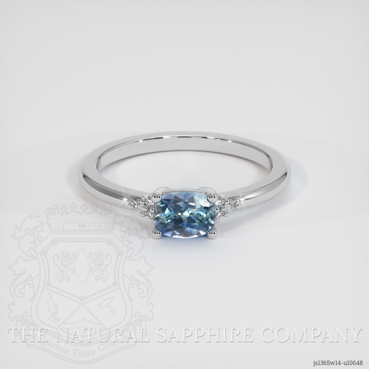 Accent Stones Greenish Blue Sapphire Ring 0.70 Ct., 14K White Gold