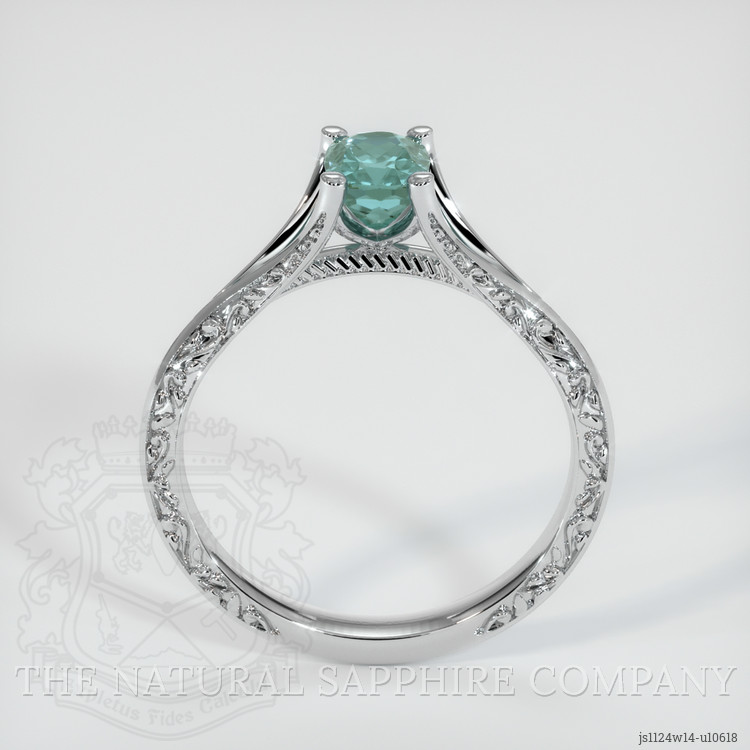 Antique Style Greenish Blue Sapphire Ring 0.92 Ct., 14K White Gold