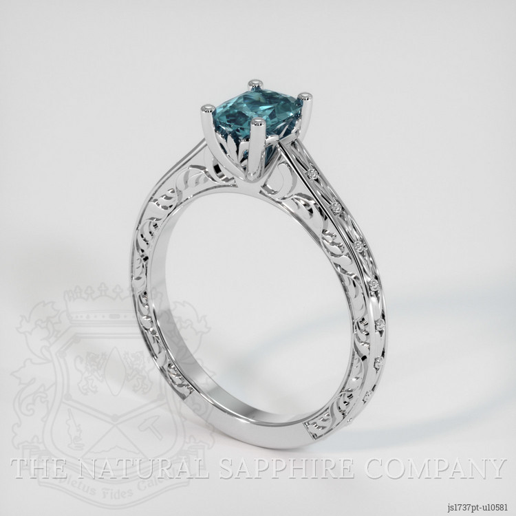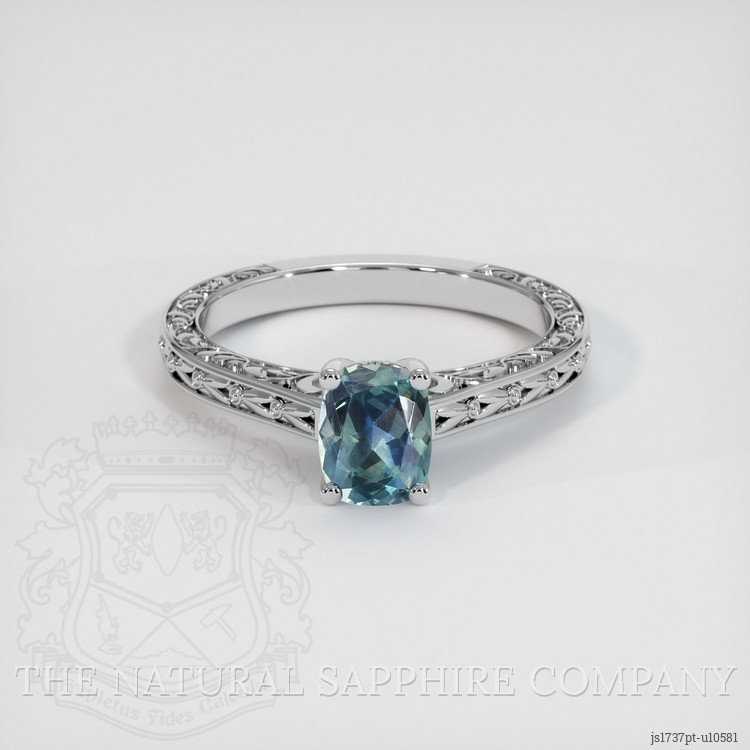 Antique Style Greenish Blue Sapphire Ring 0.99 Ct., Platinum 950