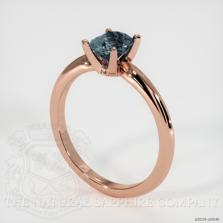 Solitaire Greenish Blue Sapphire Ring 1.05 Ct., 14K Rose Gold