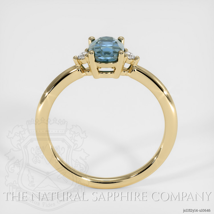 Three Stone Greenish Blue Sapphire Ring 1.05 Ct., 14K Yellow Gold
