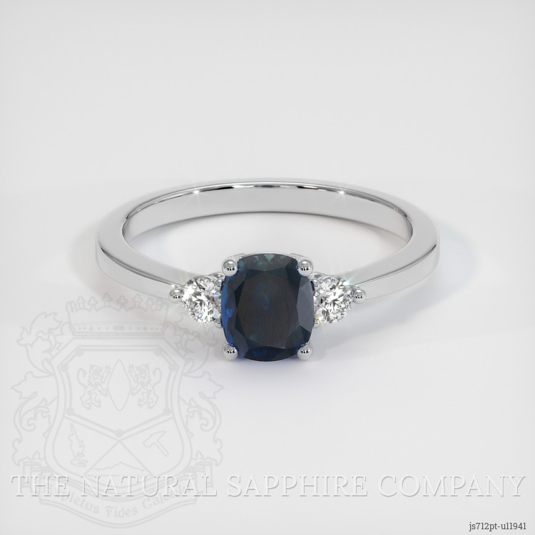 Three Stone Greenish Blue Sapphire Ring 1.07 Ct., Platinum 950