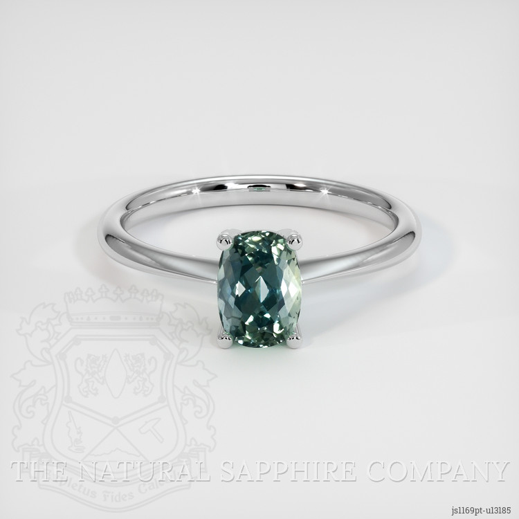 Solitaire Greenish Blue Sapphire Ring 1.14 Ct., Platinum 950