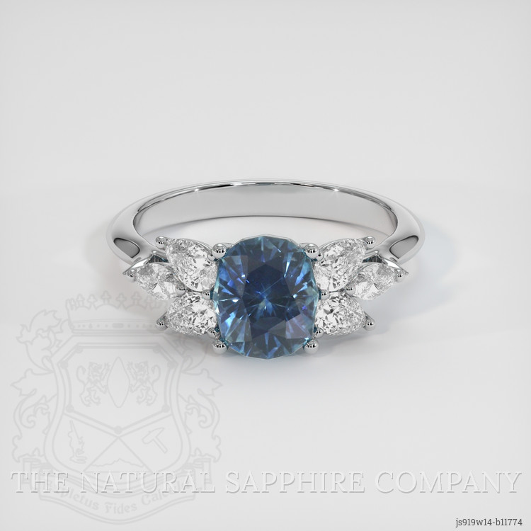 In the heart of Montana, where the rugged landscape hosts a hidden treasure trove, our story begins with a remarkable gemstone buried deep within the Earth's embrace. The greenish blue sapphire featured in this exquisite ring is a testament to nature's exquisite artistry. Over countless centuries, the planet crafted this 1.18-carat cushion-shaped wonder, with dimensions of 6.73 x 5.77 x 4.08 mm, unveiling its beauty with a fancy brilliant cut. The journey from the rough, untouched sapphire to its lustrous final form is a captivating tale of transformation. This sapphire, with its intense color saturation and very slightly included clarity, has been polished to perfection, reflecting both the ancient land it came from and the modern craftsmanship of The Natural Sapphire Company.