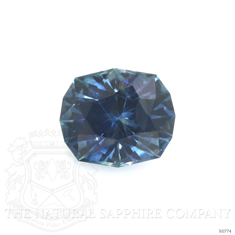 The ring features a beautiful, transparent 1.18 carat cushion shape greenish blue sapphire with the dimensions of 6.73 x 5.77 x 4.08 mm and a fancy brilliant cut. It has a clarity grade of very slightly included (evaluated at eye level), intense color saturation, and an excellent polish. The origin of this sapphire is Montana.