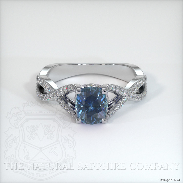 Pave Greenish Blue Sapphire Ring 1.18 Ct., Platinum 950