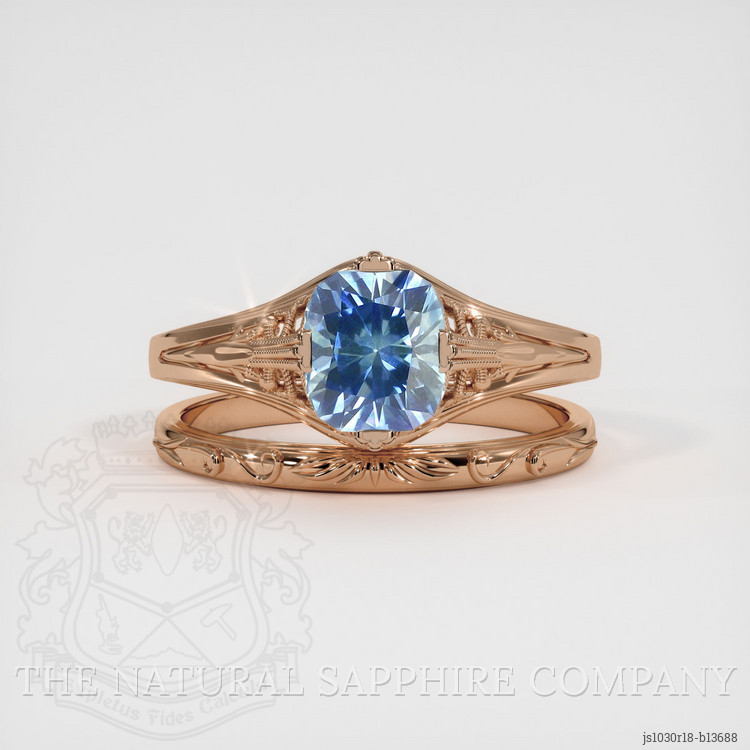 Antique Style Greenish Blue Sapphire Ring 1.21 Ct., 18K Rose Gold