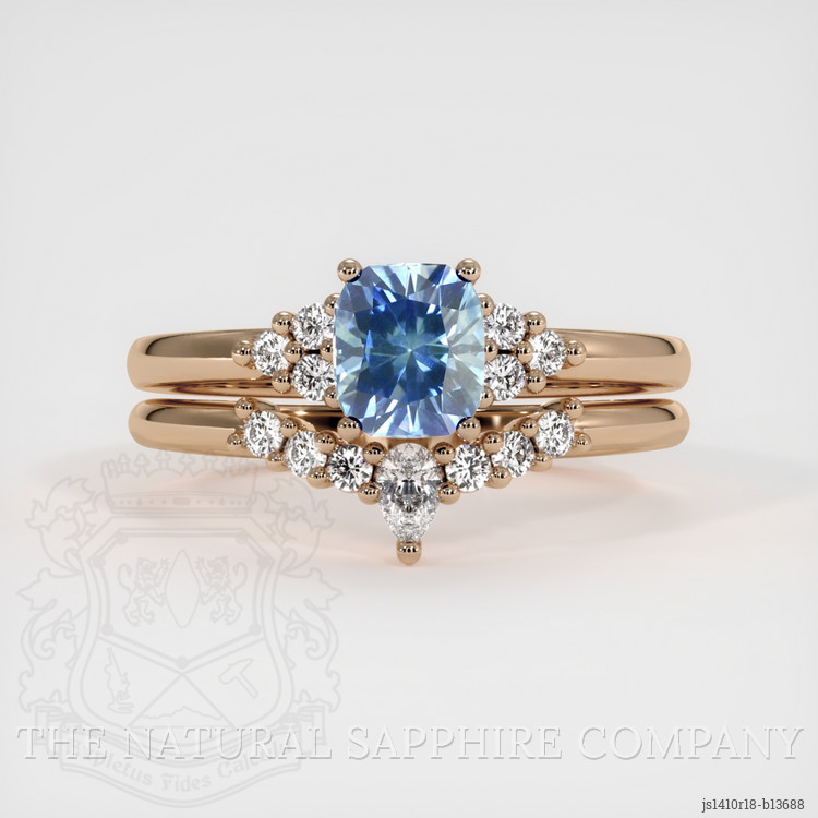 Accent Stones Greenish Blue Sapphire Ring 1.21 Ct., 18K Rose Gold