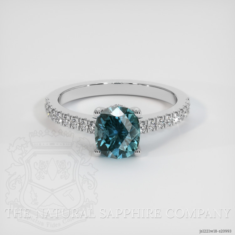 Pave Greenish Blue Sapphire Ring 1.35 Ct., 18K White Gold