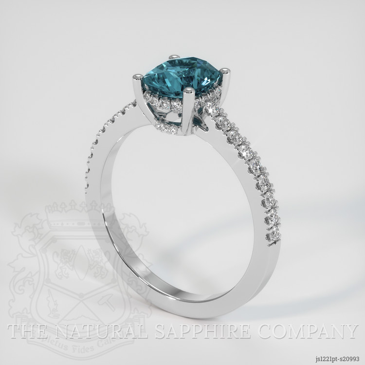 Pave Greenish Blue Sapphire Ring 1.35 Ct., Platinum 950