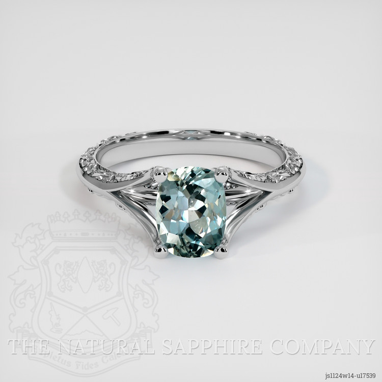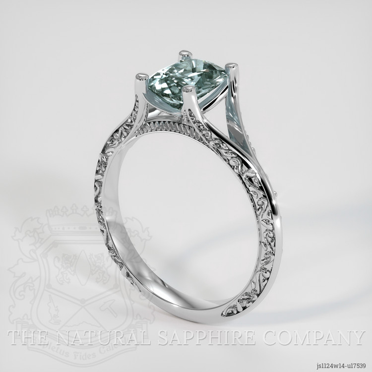Antique Style Greenish Blue Sapphire Ring 1.43 Ct., 14K White Gold