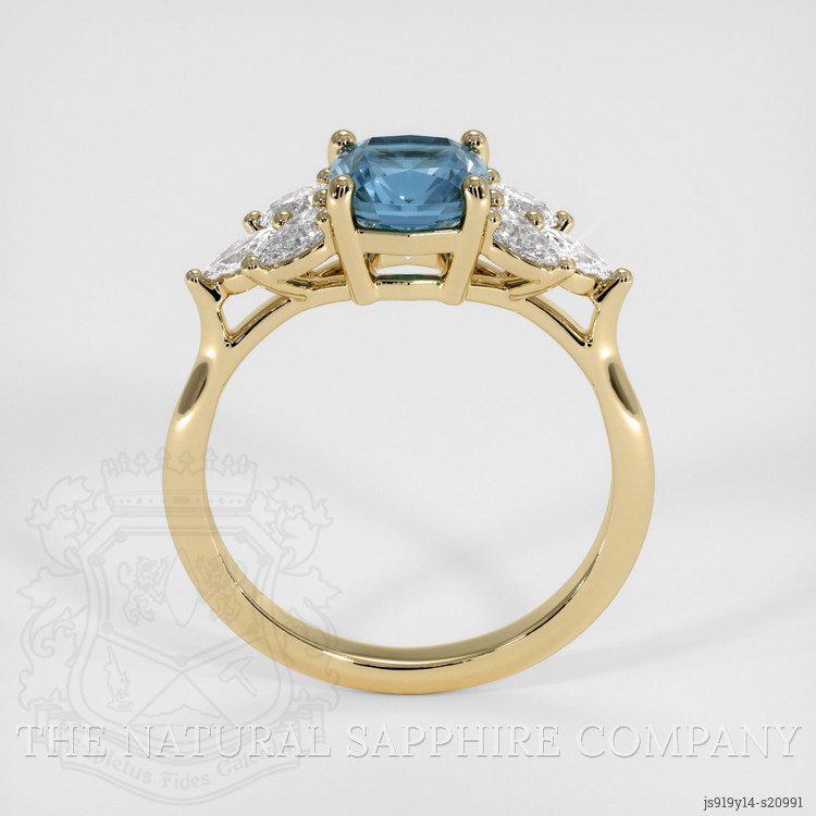 Accent Stones Greenish Blue Sapphire Ring 1.59 Ct., 14K Yellow Gold
