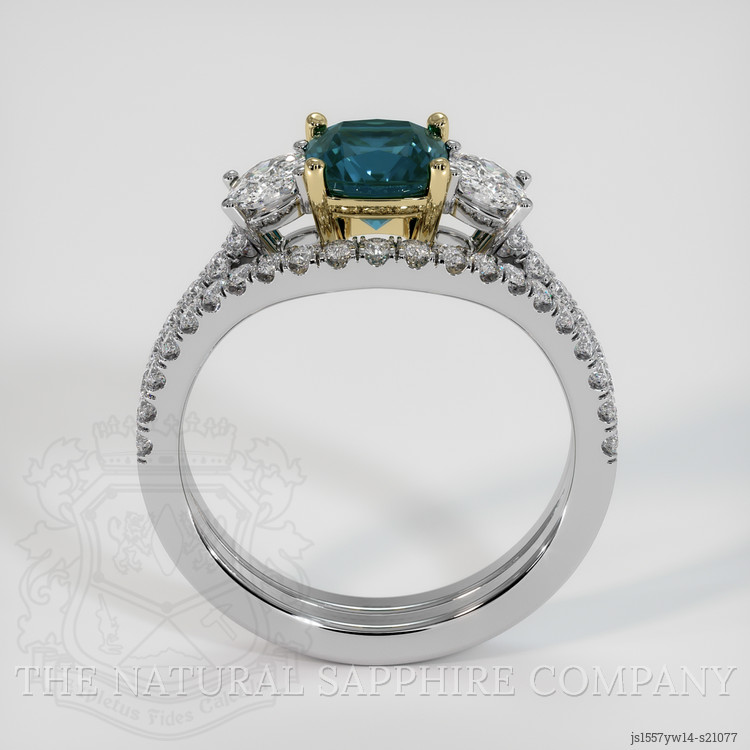 Pave Greenish Blue Sapphire Ring 1.69 Ct., 14K Yellow & White